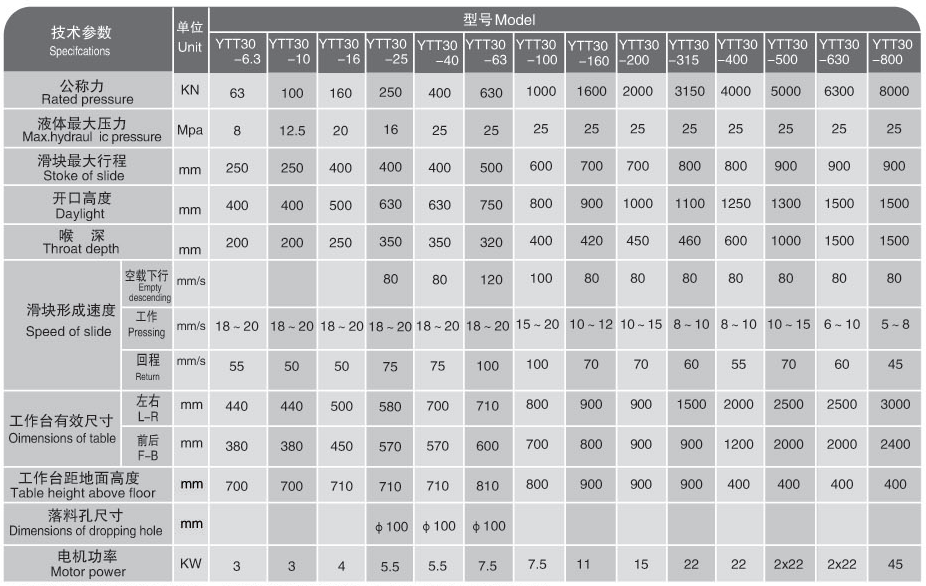 滑塊的工作壓力,空載快速下行和慢速工進的行程范圍均可根據工藝需要進行調整。